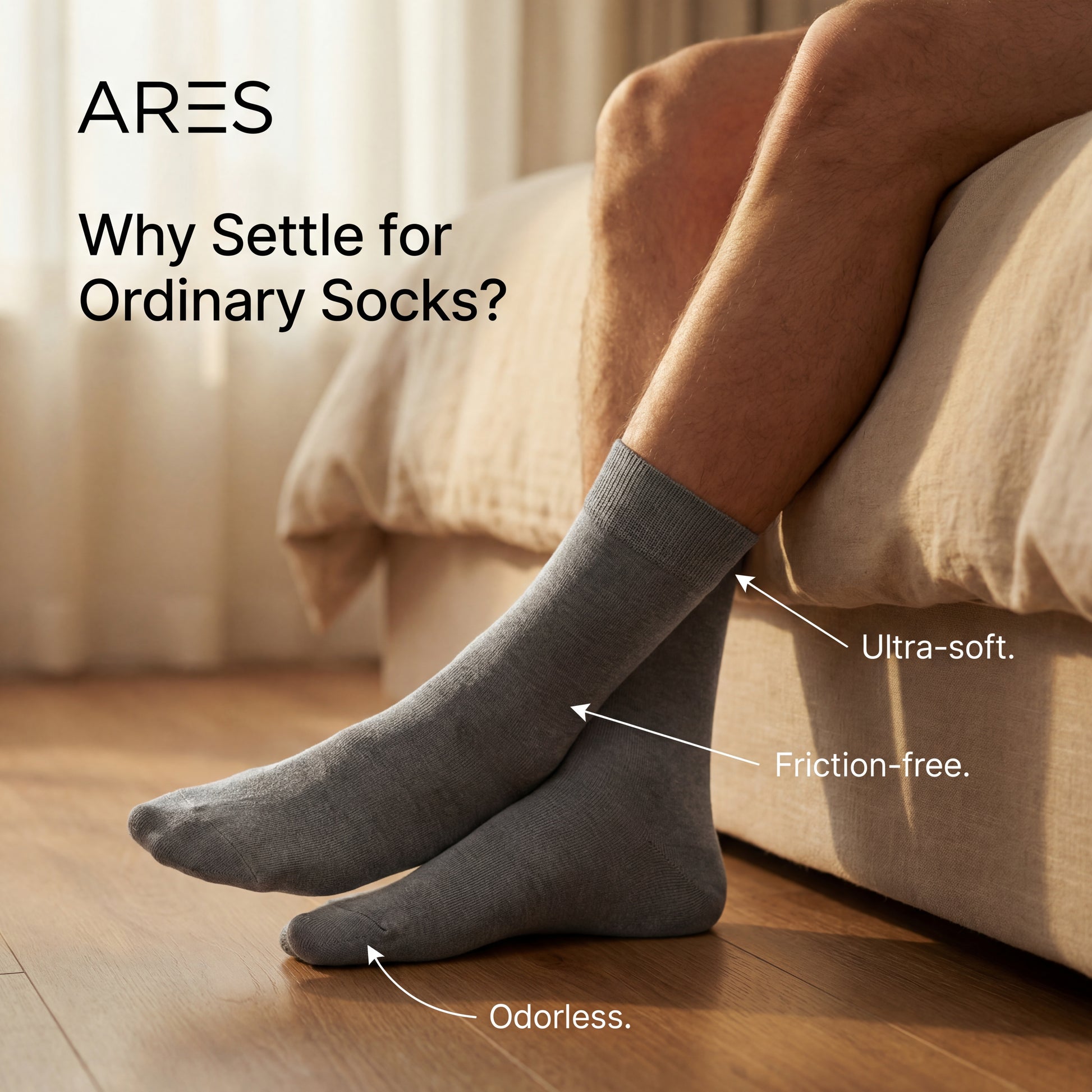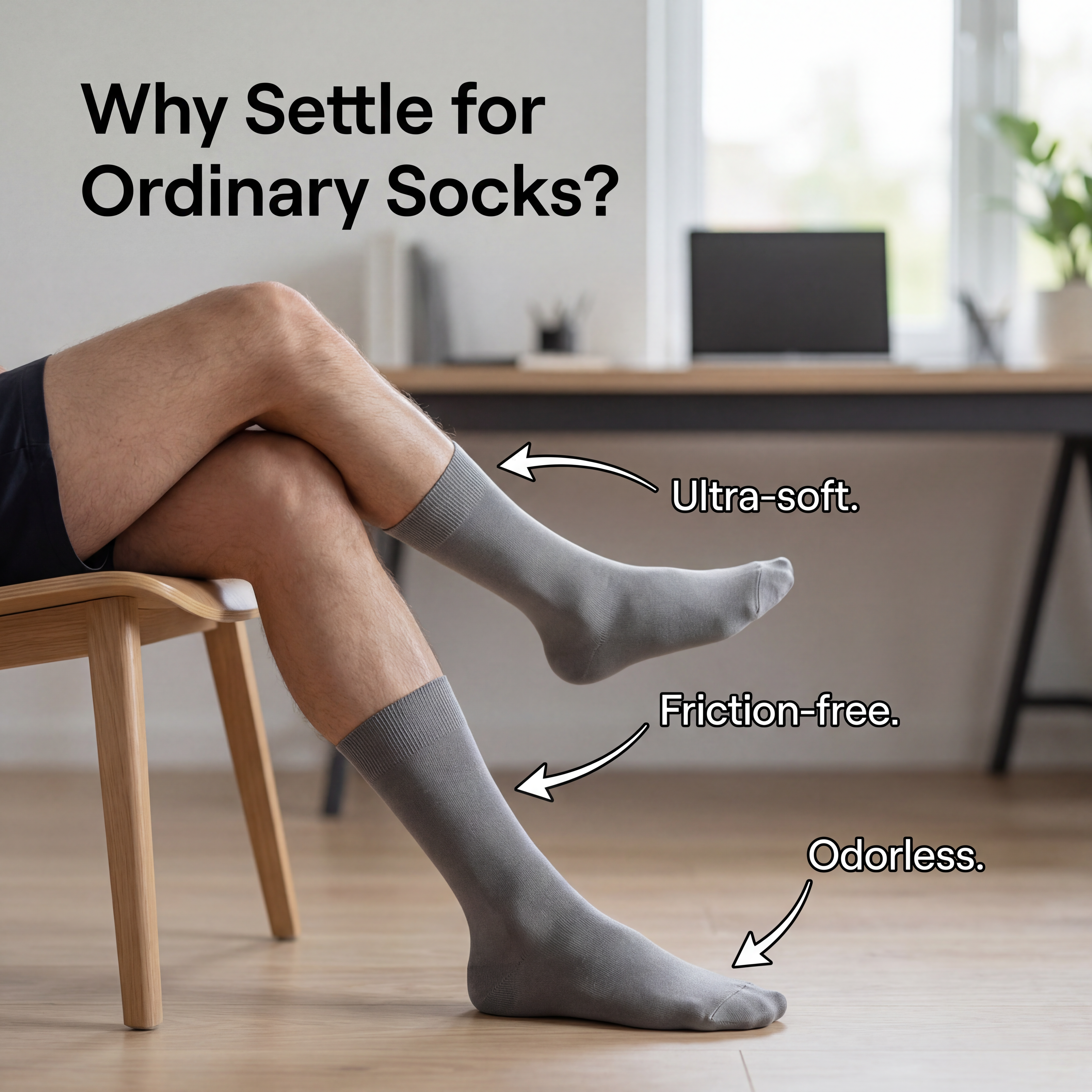 絹は自然に湿気を吸い取り、外へ逃がします。一日の終わりに足が蒸れることはもうありません。